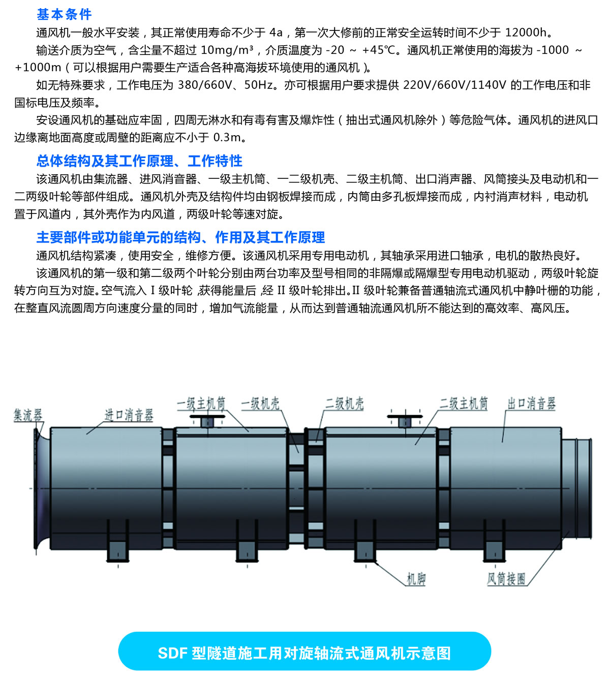 SDF型隧道施工用對旋式軸流通風機